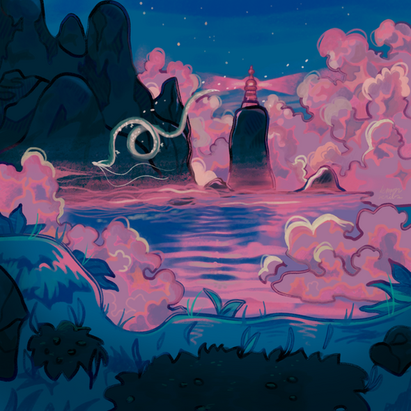 #artwork #beast #creature #digitalart #digitalpainting #dragon #fantasy #fantasyart #fantasycreature #fantasylandscape #fog #foggy #journey #krita #landscape #magic #magical #mist #misty #monster #mountains #nature #night #path #road #stars #valley #wyrm #art #frostworkchan
