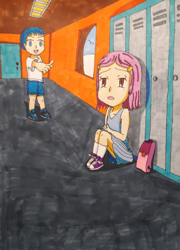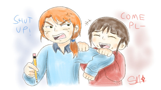 This one, however, was more inspired on the Neon Genesis Evangelion art style (even if though it may not look like it), because where else would I turn to when there's a person saying 'baka' other than Asuka? (And also probably something to with the fact that NGE is one of the only anime series that I've ever watched to the end.) Basically, I just looked at a bunch of Evangelion screenshots as reference because I'm not a good artist and I'm sure I'll know how many flaws this has in a few weeks or so.