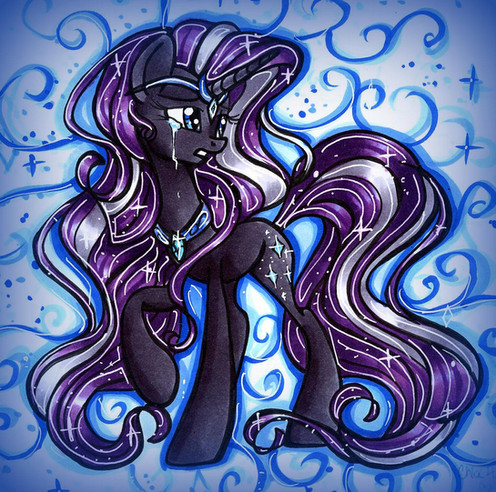 I really liked Nightmare Rarity's design in the comics, and I wanted to try to draw her for myself. So here's my attempt at itRelated content
