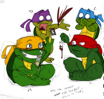 Generally Raphiel gets the darker looking bits of art... but you got Mikey potrayed here. What are YOU hinting at?