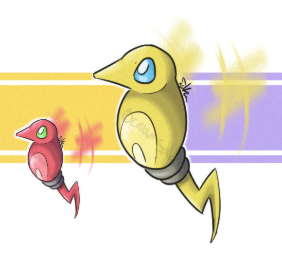 Major rehaul of this lineΒ www.deviantart.com/frozenfeathβ¦, wanted it to be more like a bug zapper and more realistic. It's more like based off lights and electricity and such. Also I'm dumping the fire type because I only had it to be super effective against bugs, and instead I'm giving it a new ability, something like "Pest control", which would make it's attacks super effective against bug type, or like half bug type pokemon's defense or something, something to drastically make it over power bugs. I would also be giving this ability to my spiderweb single pokemon.These pokemon tend to only come out a night when other nocturnal bug pokemon come out to explore. They love deep forests that are full of the bug type pokemon they prey on. They can easily be found by their constant low buzzing noise as well as the sudden sparks they flash off.