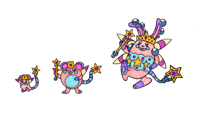 yeah originally it was just going to be the middle one, then i thought i wanted it developed a bit more, but it wasn't quite developed enough, but i also wanted a REALLY simple first one. i had debated on it being a mega but decided i was just going to make them a simple evolution line, gen 1 style