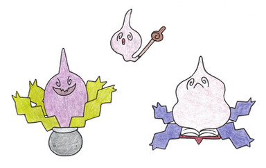 Really liking the new evos. Especially the 'good magic' one - can imagine the book slamming shut when it faints in battle, haha. The 'bad magic' one reminds me a bit of Spiritomb, but only on a superficial, slight level.
