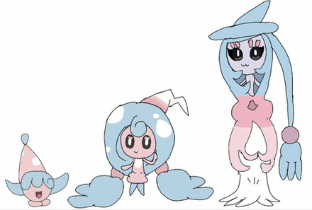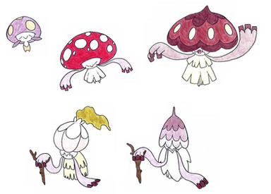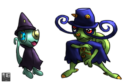these pokemon are very evil, they create venomous and sometimes deadly potions out of berries they find. they use psychic moves to control their opponents. people think they can grant wishes to trainers. the final evolution has learn to control their powers by using a stick, uniquely chosen for each one.