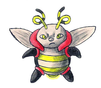 now owns!!!this is my bumblebee pokemon, this pokemon flies all around looking for flower pollen. they have thick fuzz around their necks that make electrical charges. they have a poison in their stinger on their rears