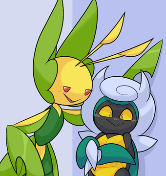 this is just a fun pic of my giraffe fakemons seen here [link] the little one is just eating innocently but the mama isn't too pleased! lol idk i thought it was cute ^^ hopefully y'all like itRelated content
