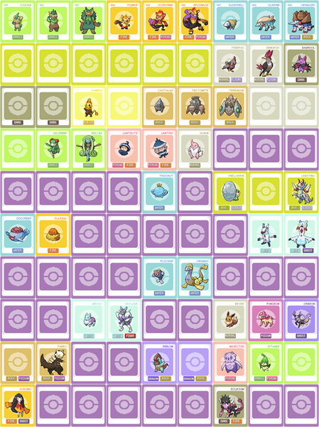 ok so i decided it might be fun to make a fakedex of my fakemon sprites i've made so far so here we go. there will be more to come as you can see by the empty slots. i am NOT planning to do a game or even full generations, i just like spriting my fakemon.these fakemon are all copyrighted to me and these were all made by me.