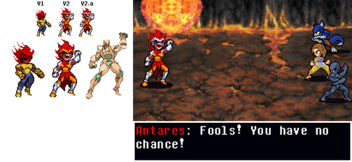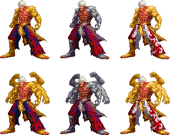 Hey everyone, here's another conversion. I made this one with the idea of Kars in his ultimate form from JJBA: Battle Tendency in mind, so I decided to use the flaming blue guy from my previous sprite conversion (fav.me/da68jik ), a sprite of Gill using his Seraphic Wing attack and one of Faltzer overworld wing sprite. I even messed with the color palettes sta.sh/019kirbinez1Credits: