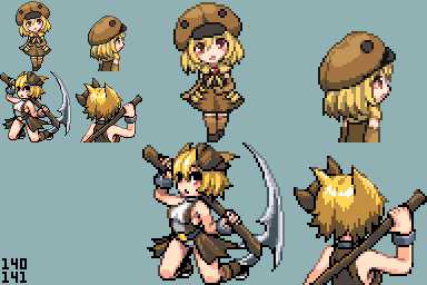Hey everyone, here's a new sprite conversion. This one took a while to finish since I haven't been spriting for a about a week and I have a few other sprite conversions that are currently works in progress. For the oni mashiro sprite, I decided to sprite a kanabo since those are associated with oni, also I definitely feel that I messed up the scythe wielder's hair shading and I wasn't sure how to fix it.Credits: