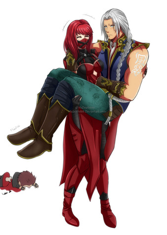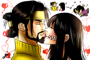 Although Kenshi Takahashi is my man in Mortal Kombat, I can not deny that Scorpion looks pretty damn fine in MK11.Here, my MK OC, Mizuki, is spending some quality time with Grandmaster Hasashi. She is not really part of the Shirai Ryu, she is more of a guest there. Although their quality time is being disturbed by Haruka's presence.