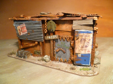 #28mm #apocalyptic #building #fallout #futuristic #miniature #model #post #retro #scenery #scrap #settlement #shack #terrain #wargaming #wasteland