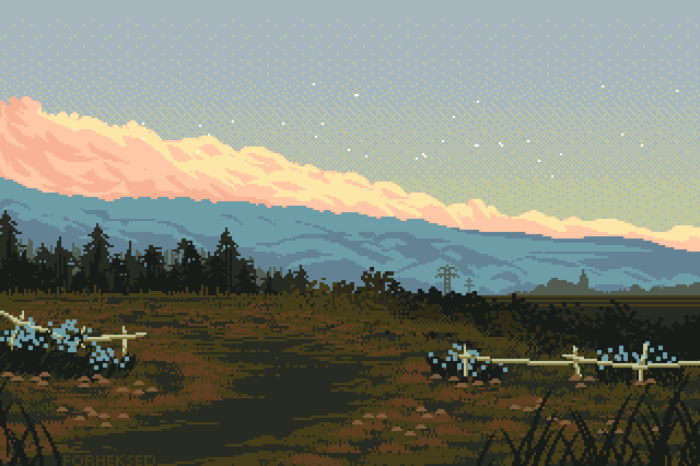 Calm and charming piece of pixel art. Simply beautiful, I like the colors