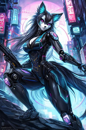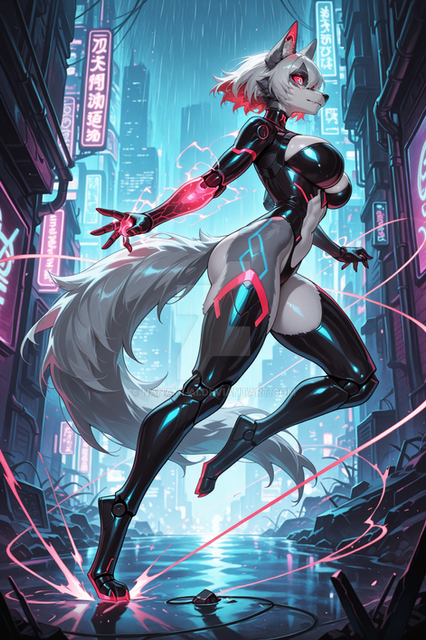 #characterdesign #cyberpunk #digitalart #originalcharacter #scifi #neon #female #furry #furryanthro #wolf #furryfurries #furrycharacter