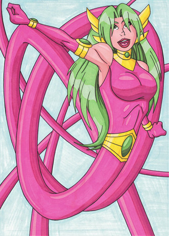 Eu também não comecei sabendo fazer isso antes não, nem mesmo leio comics de heróis pra me inspirar em estiramento. Fiz apenas um esboço da Elástica uns dois anos antes de ingressar no DA e postei apenas como uma personagem que não tinha desenvolvido na ocasião. Aí o pessoal aprovou, o Olavo apareceu, me apresentou a Keitie e eu gostei dela e o resto foi história...