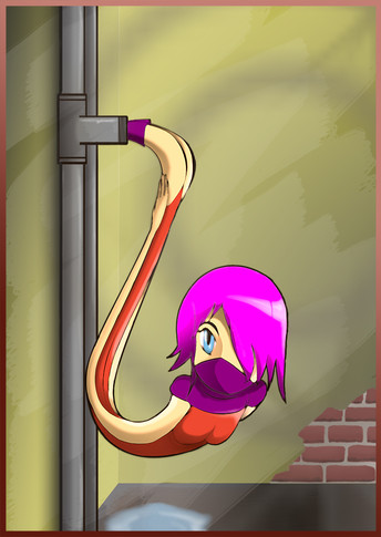Great color scheme on this character, but I really like those eyes and expression on her as she slides in through that air vent.