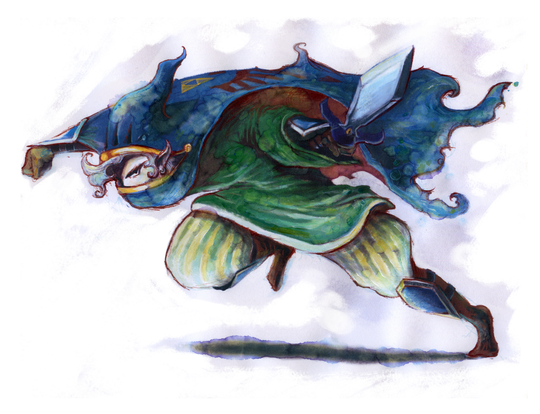 I love the flow, the disproportionate body type. Everyone draws link nearly the same way. This one throws him out in a different, and I think refreshing perspective. I also find myself loving textures, everything looks of actual material, has a life of its own. I just like it.Β