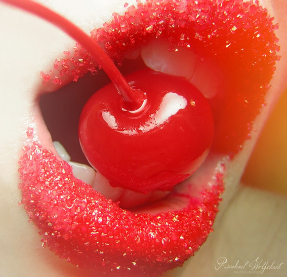 the bubbles really add an awsome efect!love the contrast between the red lips and cherry and the white face!