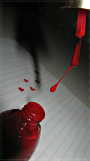 with some small pins from the bowling-center (was drink inside), i did them on a glass-plate, did some theatre-blood on it and shooted it