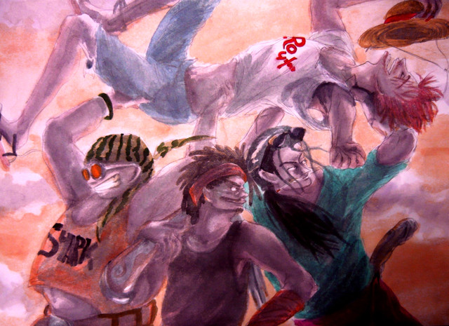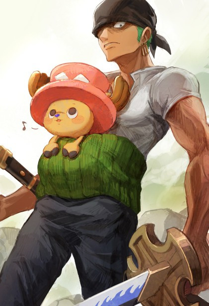Roronoa Zoro and Tony Tony Chopper.Watercolors, pen.