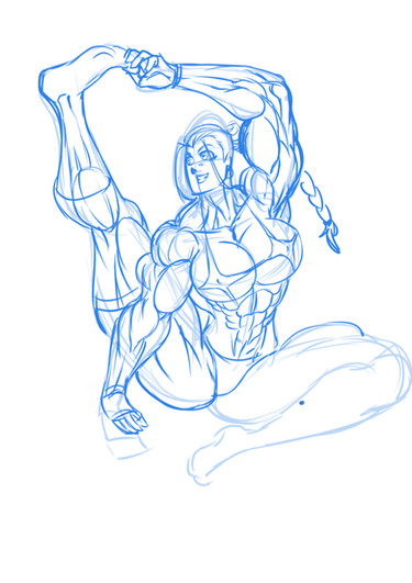 I made this and then noticed that it's got serious "Draw the rest of the owl" vibes. Oh well. Kinda tutorial, awaaaaaay~1: Sketch/Frame Usually I split these into two steps, but sometimes they blur together depending on the pose. Draw a rough, rough sketch for the body, almost detail-less besides the basic shapes for the body and head. That's the "frame". Then, draw the face, clothes, and add more detail to make sure the body is lined up properly and the anatomy holds together. That's the "sketch". Depending on how I approach the sketch, it can be really clean like lineart, or rough like this. Usually if I'm going to color it, the sketch is rough because I want really fine-tuned lineart for coloring. For this one, the pose has a lot of slight bends and curves, and a lot of bulk, so most of the frame is gone after corrections were made for the sketch. (I erase the frame as I make the sketch if it's too far off because it messes with my perception of the drawing.)