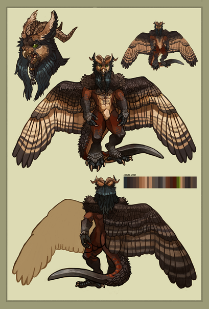 i loved your wing choice and how it made so much sense re: everything else about the design (the zygodactyl feet, the relatively short height), it all makes for an excellent arboreal-dwelling demon (i'm not sure if that was your intent though of course).