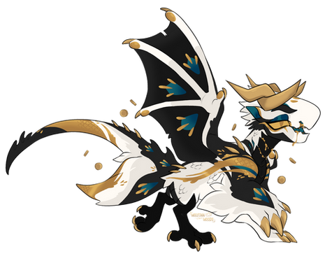 (a dragon from flight rising)he's changed colours and genes since i posted him here last but there he is. his wings are some kind of membrane-feather hybrid idk i was being lazy with them (though the patterns on the membrane are just markings)