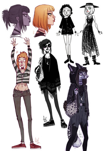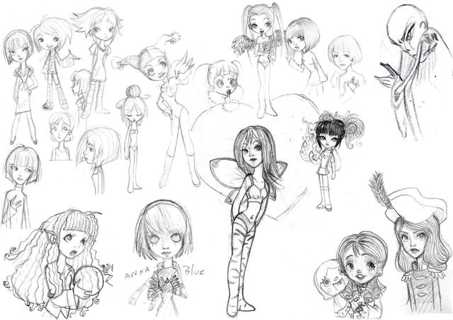 Very cool! I especially love the edgyness of her shoulders on the sketch 2nd to the right.