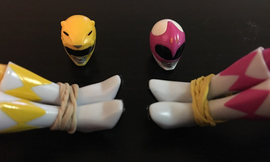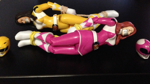 The Pink and Yellow Rangers have been captured, bound, and gagged!Related content
