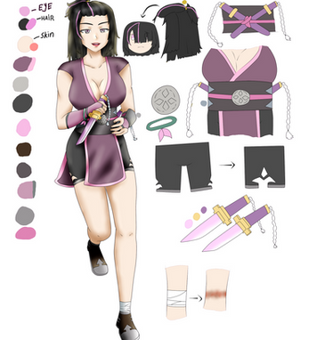Here is the latest reference sheet for my original character, Mai-Li!She stands around 5 feet, 6 inches tall.
