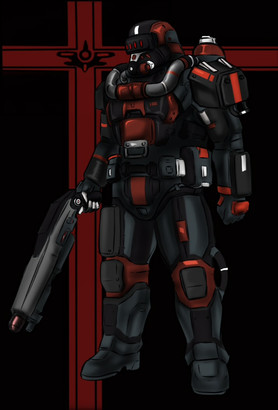 PROJEKT KREIG 2013- The Kreiger program is advanced military R and D program founded by the internal colony government of the new sphere of mars or the N.S.M.The N.S.M Ritter (knight) program was conceived to give elite and specialized units further survivability than the standard Kreiger units. Additional ballistics plating and fibers were added and re-structured to better protect the wearer.