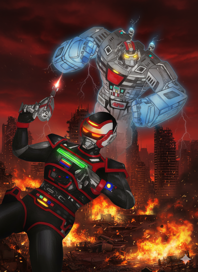 I was essentially tasked with making comic book covers that resemble action figures, so that when you see it from far away, it seems like it'd be a toy on the rack but turns out to be a comic instead. I was given a template and made Phantom Ranger, his gem and his phantom laser.