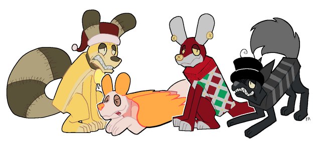 Blue dog top left is DragonFly JuiceGrey pink dog is Patches