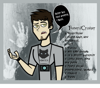 New TDI ref of moi. I don't have a goatee, but my attempt at drawing my chin strap looked almost as horrid as it does irl (althoughmostpeoplethinkitsuitsmecough). I'm usually told I look grumpy and mean, but I'm a jellyfish, who cries when he's forced to kill bugs. Either way, I figured I should bring out that feature of mah face. Idek @ speech bubble. I improvised. Hueh.dem broken legs