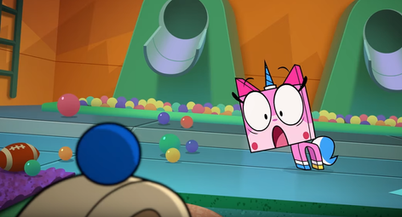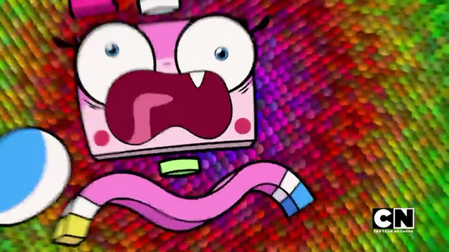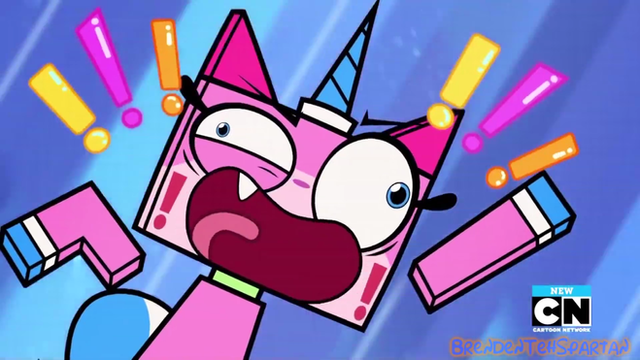 Ooooooh I love this scene!! It was seen on a recent unikitty episode called Super Amazing Raft Adventure, as well as one of those best summer ever promo that ended up being a hoax. Unikitty is scene shocked with happiness when Hawkodile finds a map... IDK the rest of the scene.Unikitty- lego/cartoon network/warner bros/ time warner entertainment company