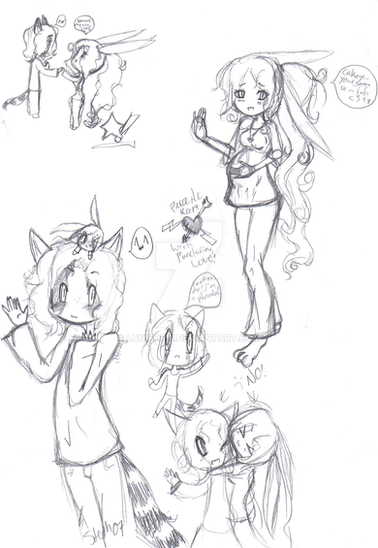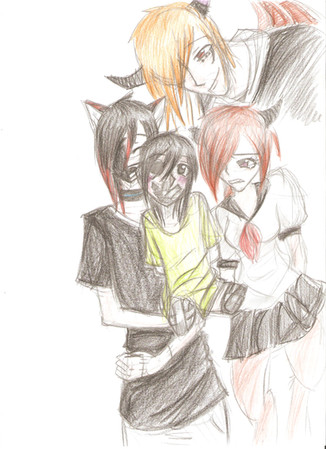 On the left is Sola. been Rego's friend since forever a tomboy and liiikes Rego.On the right is Pyuuchu, he is very powerful and girlish and also liiikes Rego.