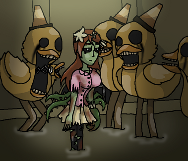Yours truly likes watching the dark deception horror game and decided to make an image about what I'd do if I was there.Idk, I just picture me hopping on one these things and being a complete moron. (I wasn't gonna hop on a live one, but at the end of the sketch I thought t be more funny.)
