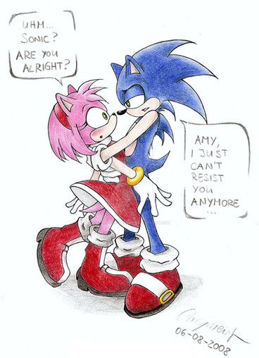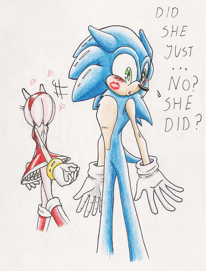 Me and one of my cousin used to have so many inside jokes formed by Amy x''D for some reason he says "he forgot" ._. anyway, Besides the joke in this art, the drawing is perfect, I can't imagine how you did it on paper! It'd take me more then 10 years to learn that ._. you officially win Sonic and Amy's face is pricelessly cute <3