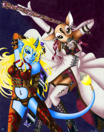 Alternate title(?): Violet Shadow & White BladeThe coloured version of a sketch I did a while back. I was just having fun and decided to switch Felicia and Violet's outfits to see how they'd look on each other.