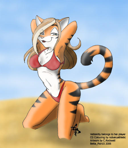Kawaiiiiiiii!! lol, Yay! Shes wearing the bikini I had drawn her in! XD >3> *giggles* Happy summer to you to! Felicia looks to cute with the pose. I wish I had abbs like hers! lol