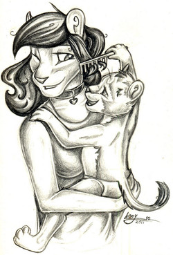 You're anthro art is friggin' amazing! You are so very good at making emotions! I really like Felicia's hair, too!