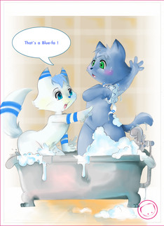A spur of the moment image, I wanted to draw the characters doing something normal. The idea of Felicia washing Tabby's hair seems cute, even if Tabby is more or less old enough to do it herself. It's more of a bonding ritual than anything else. Felicia may not look to happy about it but the chances are it was her idea and serves to further how that relate to each other.