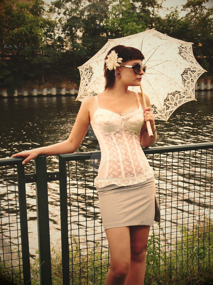 Nice shot. Everything is great, the model, the clothing, the lighting. But why is her bra that small, some particular reason?