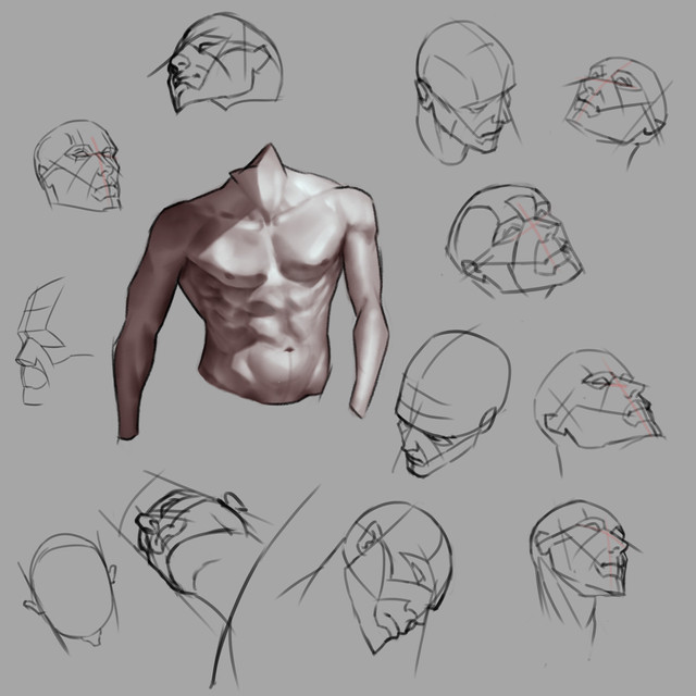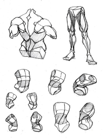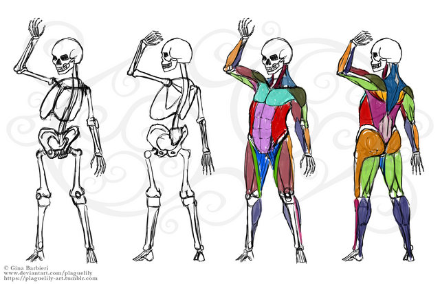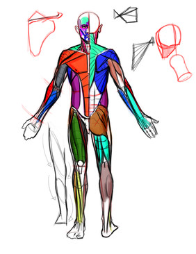 I gave my head painting class a quick crash course in anatomy so that they could start working onlong poses for the final.Β I grouped the forearm, and hamstring muscles and spaced out the tricep insertion to make things more clear.