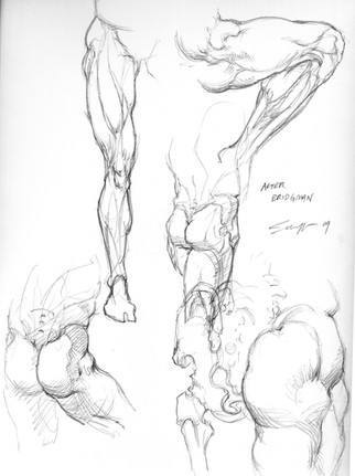 2 birds with one stone. Studying knee shapes for the Superman Batman print, and making handoutpieces for class