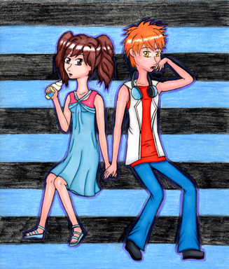 Hello!I don't know what to say about this picture, I just wanted to draw my two OCs Hideaki and Ichiho. I did, but I got the beach idea since I want it to be summer like NOW. haha.