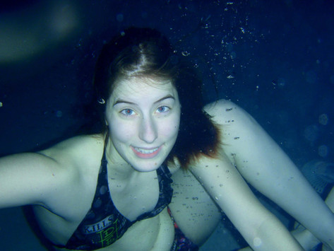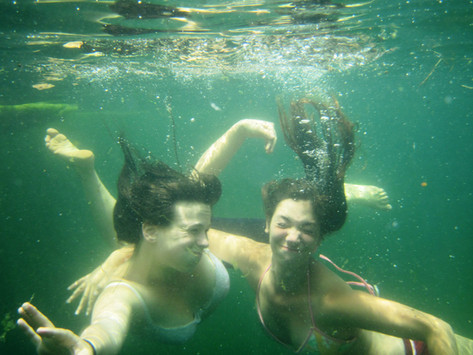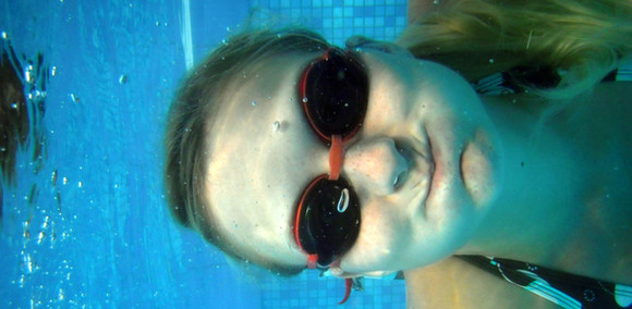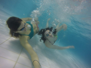 Funny "fish" have fun with goggles, swim masks, snorkles, and bubbles too.ย ย ย