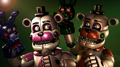 Some sort of random poster.Funtime Freddy, Bonnet, and Blacktime Freddy by: Scott Cawthon