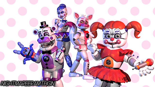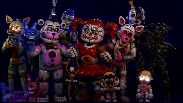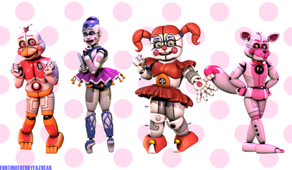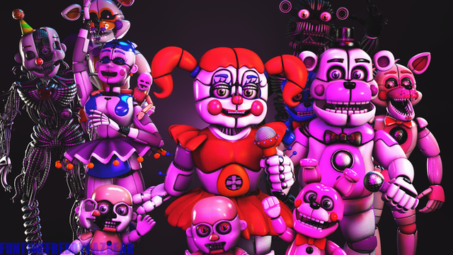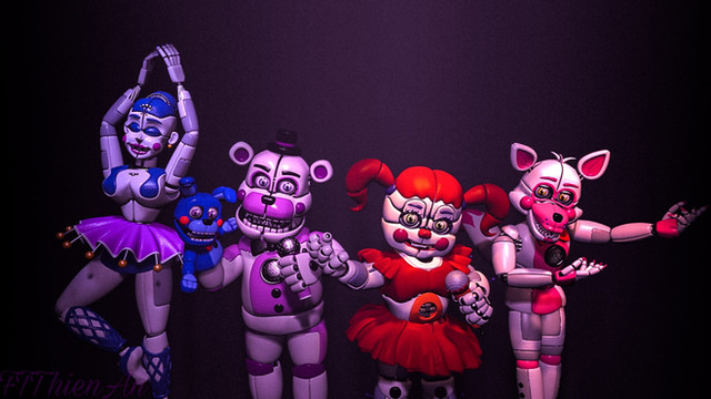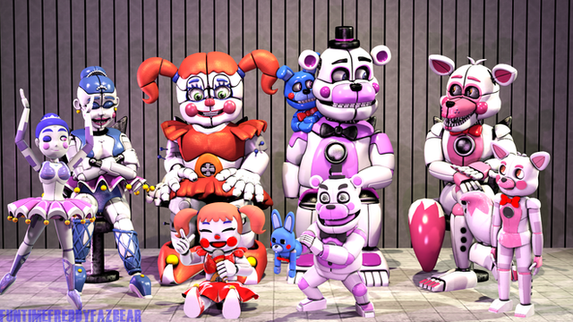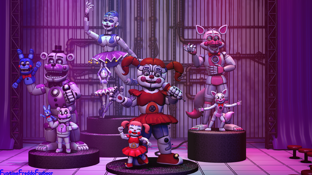 Used Chuiza's Freddy since the SLVR one T-Poses whenever it's rendered so yeah. And yes, not original, rip.Circus Baby, Ennard and Funtime Foxy by Scott and SWS fixed by: