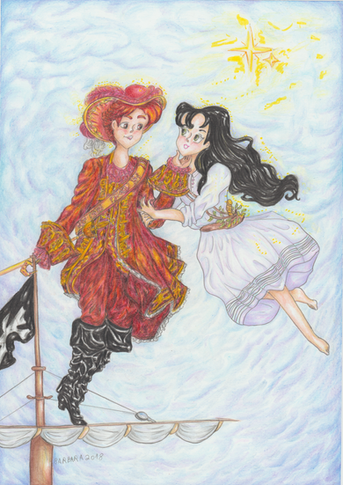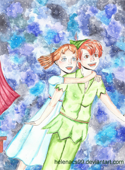 Peter and Wendybefore anyone says anything...yes, I realize they look a little older...they just kept wanting to be fourteen or fifteen instead of ten. Also, sorry for the random black dots...I think it's glitter. I'd scanned a piece that included copious amounts of glitter and I guess I didn't clean it real well...