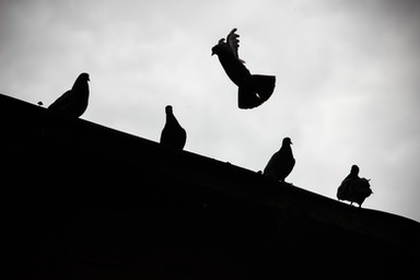 Very surreal. The bird almost looks painted into the concrete..
